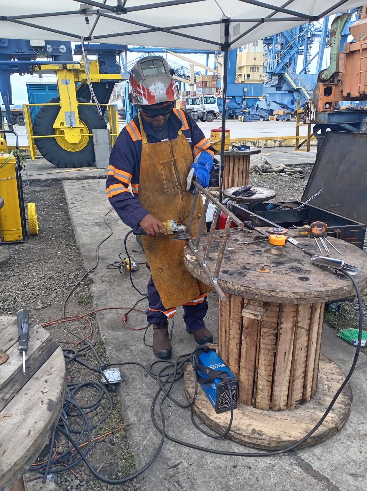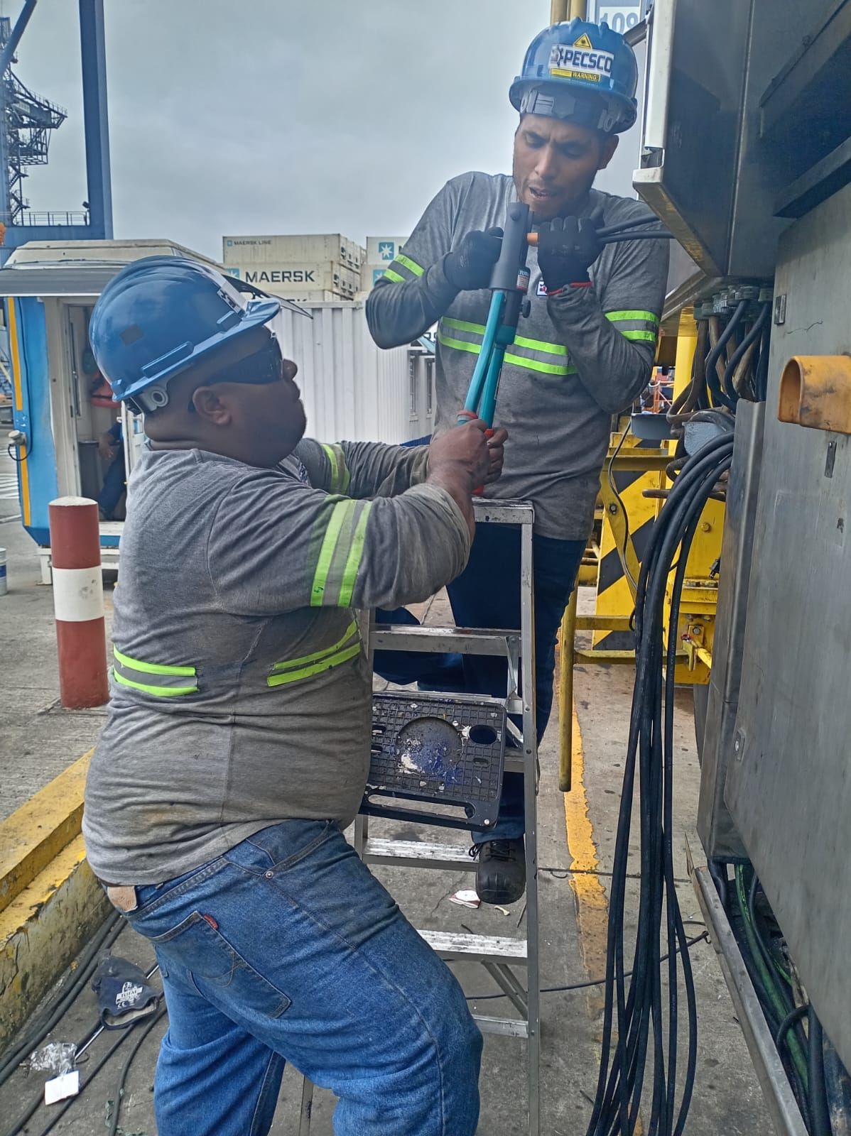 Ejecución de mantenimiento integral en el sistema de brazo eléctrico de grúas RTG para asegurar una transmisión de potencia ininterrumpida.