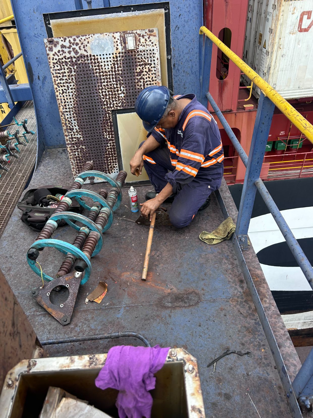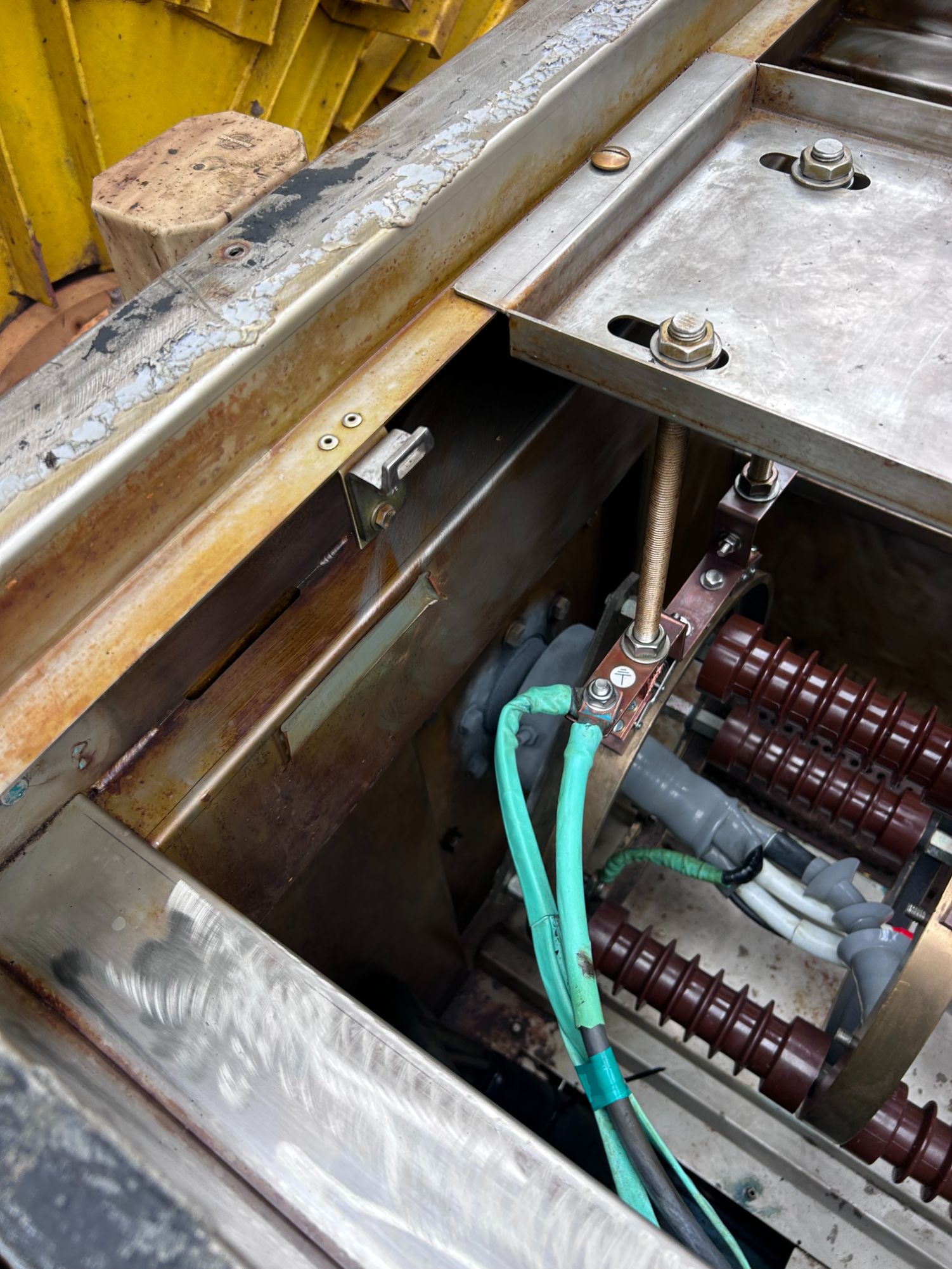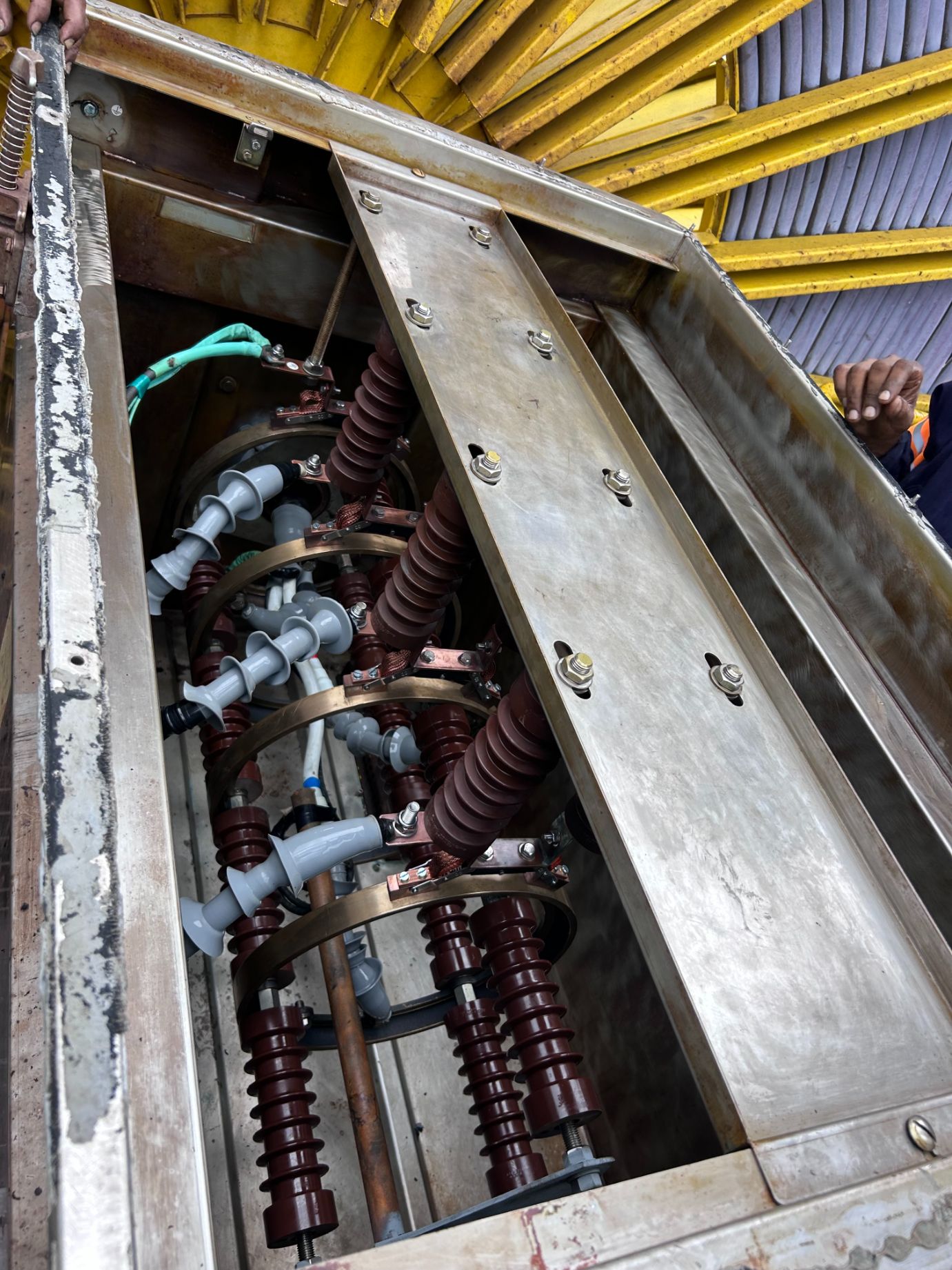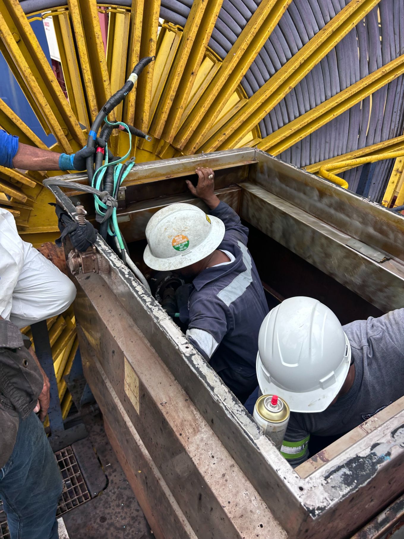 Intervención especializada para el desmontaje e instalación de unidades de slipring de alta tensión y fibra óptica.